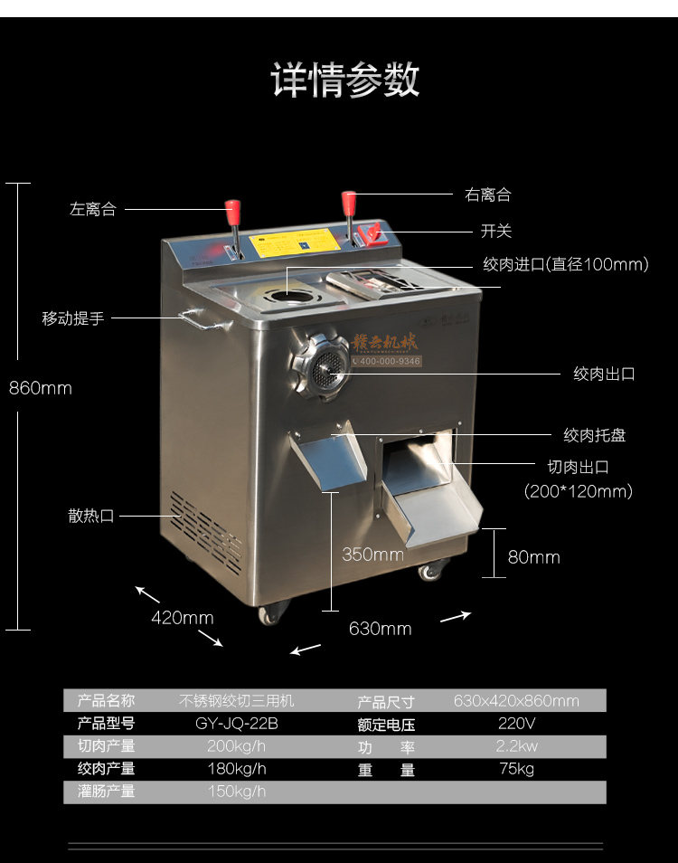 贛云GY-JQJ-22B不銹鋼絞切三用機(jī)