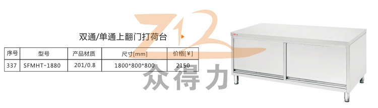 江西眾得力廚具有限公司生產(chǎn)銷售食品機械、商用廚具,為您提供中央廚房整體解決方案而不斷努力,打荷臺系列分為雙通系列單通系列、暖碟系列、翻門系列,標準尺寸為1.8米*800mm和1.5米*800mm兩種規(guī)格,歡迎選購。