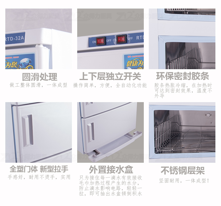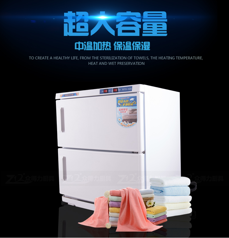 本產(chǎn)品中溫加熱,保溫保濕,毛巾消毒,不再讓細菌和螨蟲威脅您家人的健康和客戶的健康。不銹鋼內(nèi)膽,智能溫控,四壁發(fā)熱,溫度分布均勻。