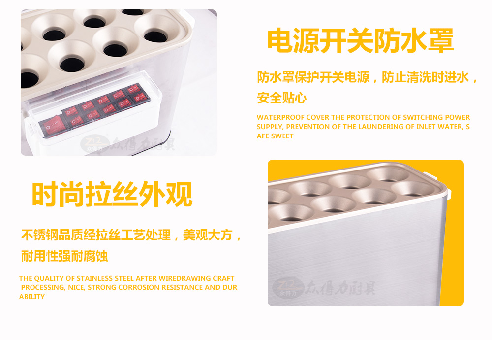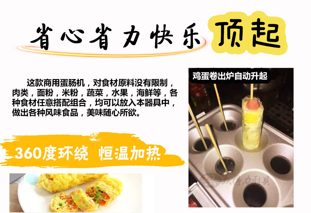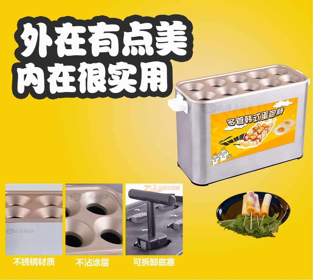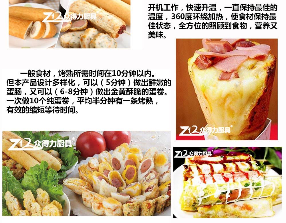 燃?xì)獾澳c機(jī),電熱蛋腸機(jī),快速升溫,360度環(huán)繞加熱,5分鐘即可做出鮮嫩的蛋腸,一次做十個(gè)蛋卷,平均每半分鐘即可烤熟一根,有效縮短等待時(shí)間,提高產(chǎn)品銷售額,蛋腸蛋卷美味吸引過往人群,小吃致富首選小設(shè)備,操作簡單。眾得力廚具,給我一個(gè)空間,服務(wù)一輩子。