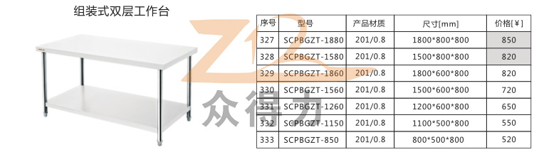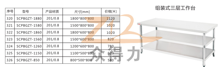 眾得力廚具為您提供中央廚房一站式服務(wù),生產(chǎn)銷售食品機(jī)械、商用廚具系列設(shè)備,白鋼調(diào)理品,本操作臺(tái)有雙層和三層之分,且有1.5米和1.8米規(guī)格,均采用1mm標(biāo)準(zhǔn)板材加工設(shè)計(jì),用料足