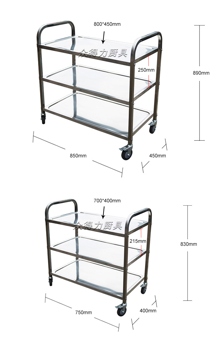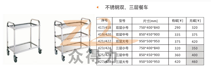 眾得力不銹鋼餐車(chē)系列價(jià)格及尺寸: