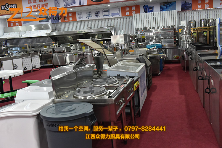 眾得力廚具,給我一個空間,服務(wù)一輩子!江西眾得力廚具有限公司產(chǎn)品展廳一角,專注廚房設(shè)備,為贛州地區(qū)提供各種小吃設(shè)備、早餐設(shè)備、自動調(diào)湯設(shè)備、米面加工設(shè)備、火鍋店設(shè)備、酒店用品、調(diào)理品等系列商用廚具,并為餐飲食品企業(yè)提供整體規(guī)劃及解決方案。
